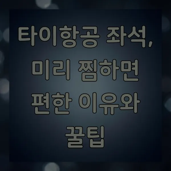 타이항공 좌석, 미리 찜하면 편한 이유와 꿀팁